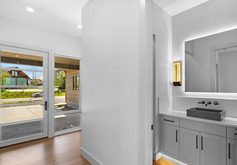 The walkout lower level is designed for both relaxation and entertainment, featuring a second living area with a wet bar and Thermador beverage fridge. This level also includes two additional bedrooms, two full bathrooms, and a covered patio, along with a bonus room—perfect for a home theater, gym, playroom, or extra storage.
